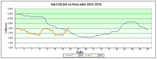 (vasep.com.vn) Trong tuần tính đến ngày 08/6/2016, giá FOB bột cá CNF Peru đã tăng 30 USD/tấn lên 2.030 USD/tấn do nguồn cung giảm.
