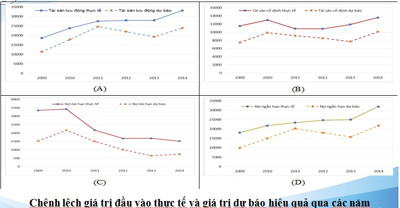 Hình này so sánh mức sử dụng nguồn lực đầu vào thực tế và dự báo qua từng năm. Nguồn lực lãng phí lớn nhất theo các năm là nguồn vốn nợ dài hạn. Năm 2011 là năm sử dụng nguồn lực tốt nhất so với các năm còn lại.