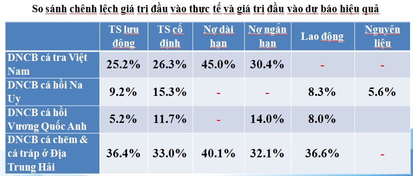 - DNCB cá tra Việt Nam lãng phí nhiều nguồn lực đầu vào hơn so với các DNCB cá hồi Na Uy và Vương Quốc Anh.