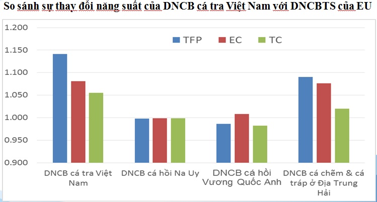 DNCB cá tra Việt Nam có tốc độ tăng trưởng năng suất (TFP) cao hơn so với các DNCB cá hồi Na Uy và Vương Quốc Anh, và DNCB cá chẽm/cá tráp châu Âu.