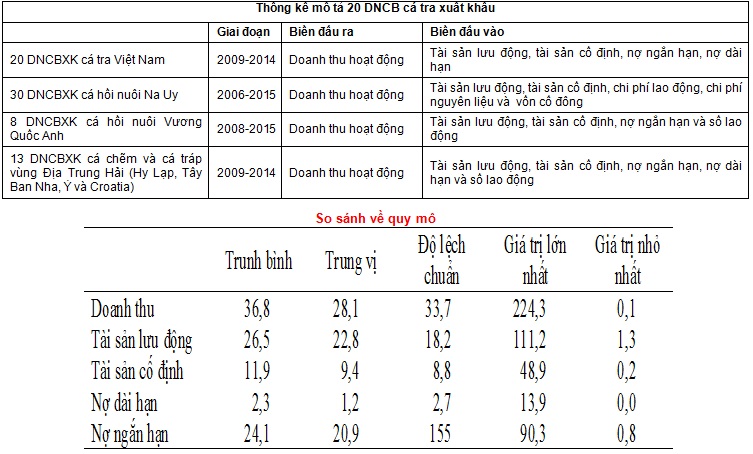 • So sánh chỉ số TE và TFP của DNCBXK cá tra Việt Nam với các DNCBXK cá hồi Na Uy và Vương Quốc Anh; và DNCBXK cá chẽm và tráp ở vùng Địa Trung Hải.