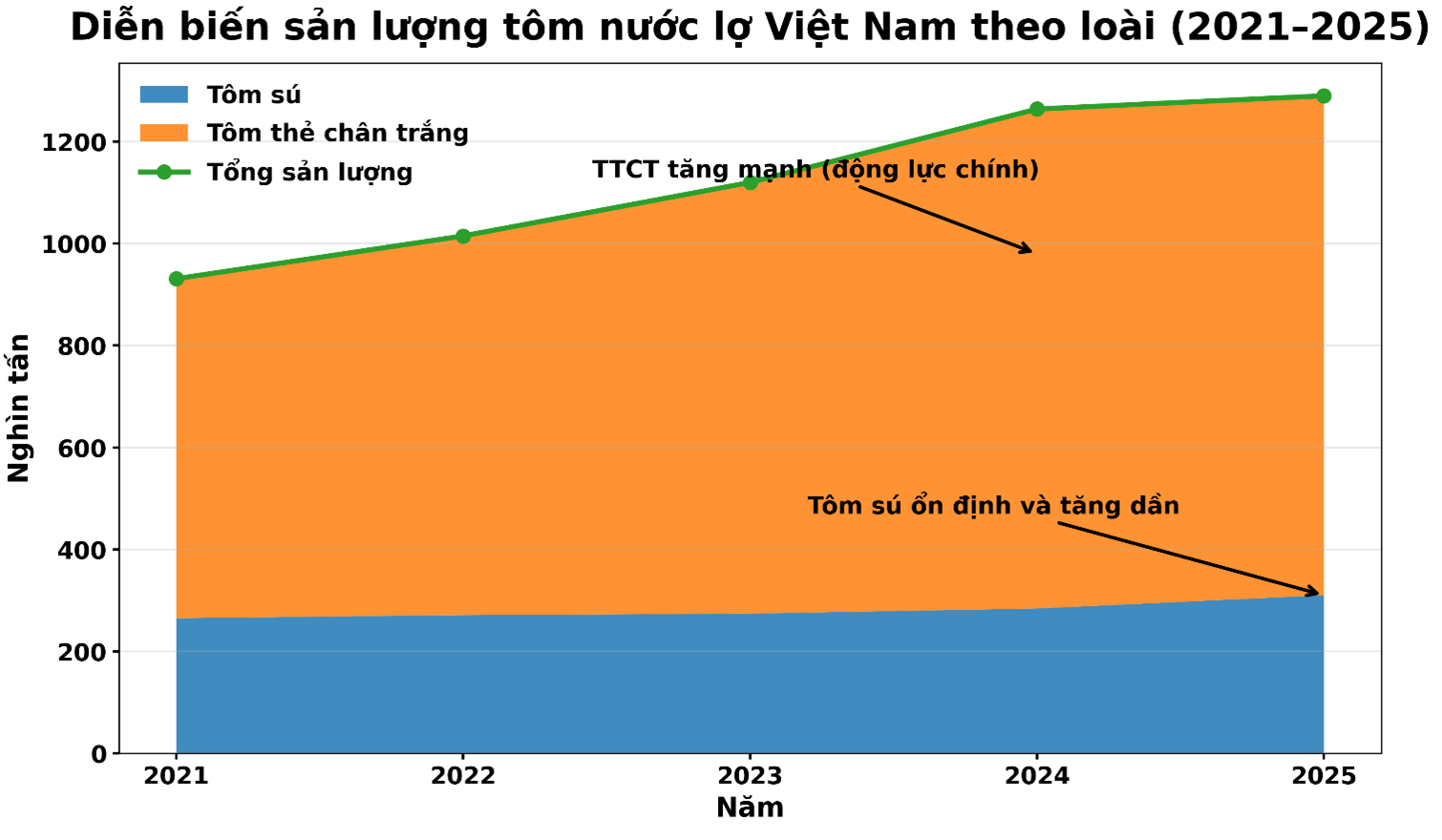 Việt Nam có hơn 700.000 ha nuôi tôm với hai loài chủ yếu là tôm chân trắng và tôm sú.