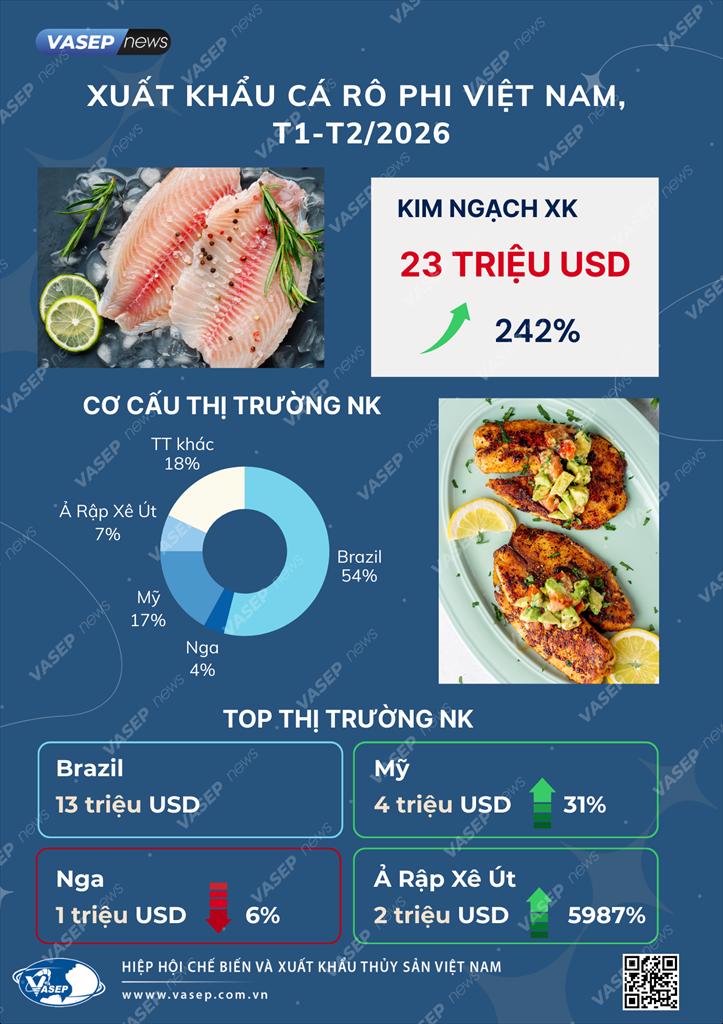 Infographic: Xuất khẩu cá rô phi Việt Nam T2/2026