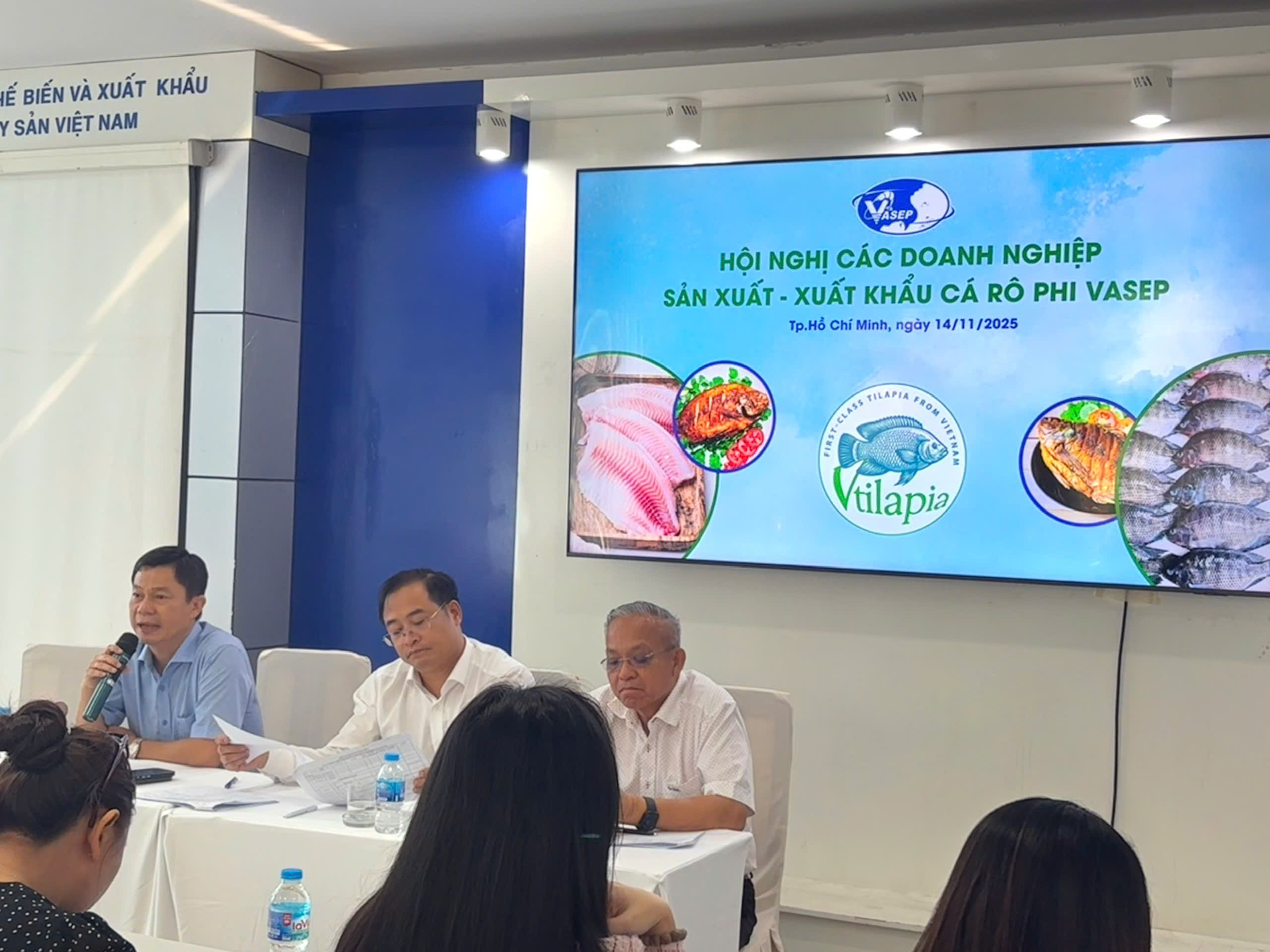 Ngày 14/11/2025, tại Văn phòng Hiệp hội (số 7 Nguyễn Quý Cảnh, P. Bình Trưng, TP. Hồ Chí Minh), Hiệp hội Chế biến và Xuất khẩu Thủy sản Việt Nam (VASEP) đã tổ chức Hội nghị các doanh nghiệp sản xuất – xuất khẩu cá rô phi VASEP. Tại Hội nghị, VASEP cùng các doanh nghiệp hoạt động trong lĩnh vực cá rô phi đã thống nhất thành lập “Câu lạc bộ Doanh nghiệp Sản xuất, Xuất khẩu Cá rô phi VASEP”.