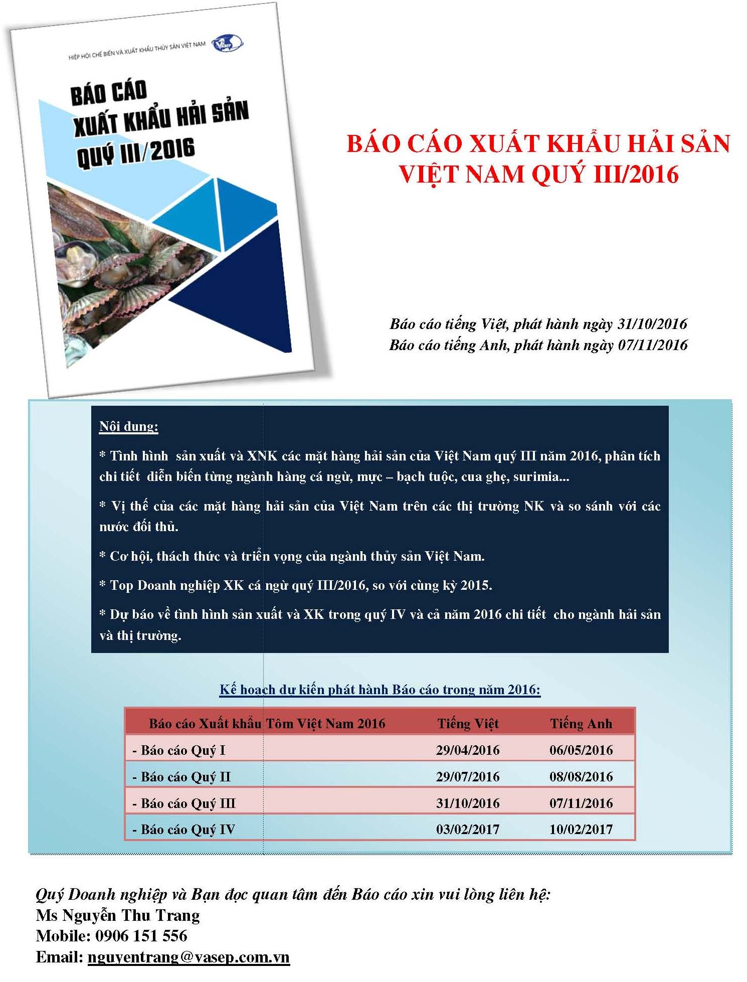 BÁO CÁO XUẤT KHẨU HẢI SẢN VIỆT NAM QUÝ III/2016