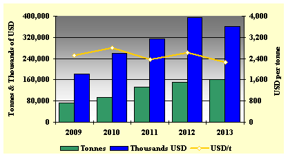 Xuất khẩu surimi cá minh thái Alaska của Mỹ, T1-T12/2009 - 2013