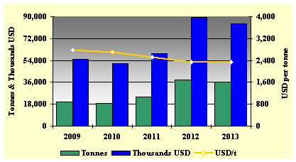 Ba tháng đầu năm 2013, Mỹ XK 36.045 tấn surimi cá minh thái Alaska, trị giá 83,989 triệu USD, giảm 6% về khối lượng và giá trị so với cùng kỳ năm 2012.