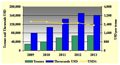 Sáu tháng đầu năm 2013, Mỹ XK khoảng 69.399 tấn surimi cá minh thái Alaska, trị giá 160,6 triệu USD, tăng 3% về khối lượng nhưng giảm 6% về giá trị so với cùng kỳ năm 2012.