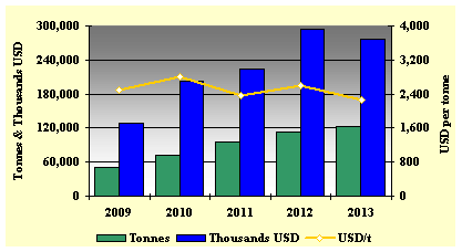 Giá: Theo Hải quan Mỹ, giá trung bình XK surimi cá minh thái Alaska (mã HS 0304991130) tháng 8/2013 là 2,18 USD/kg, giảm 3% so với tháng 7/2013 và 25% so với tháng 8/2012. Giá trung bình NK 8 tháng đầu năm nay là 2,27 USD/kg, giảm 12% so với cùng kỳ năm ngoái.