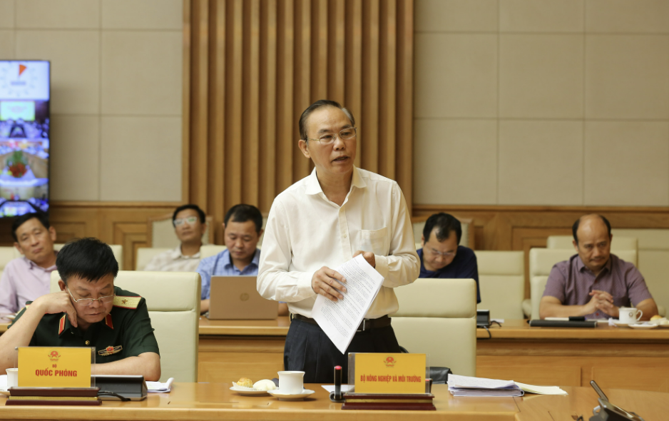 Thứ trưởng Bộ Nông nghiệp và Môi trường Phùng Đức Tiến báo cáo tại cuộc họp - Ảnh: VGP/Minh Khôi
