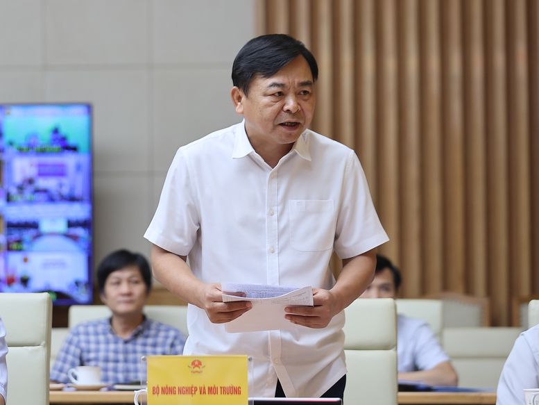 Thứ trưởng Bộ Nông nghiệp và Môi trường Nguyễn Hoàng Hiệp báo cáo tại cuộc họp - Ảnh: VGP/Nhật Bắc