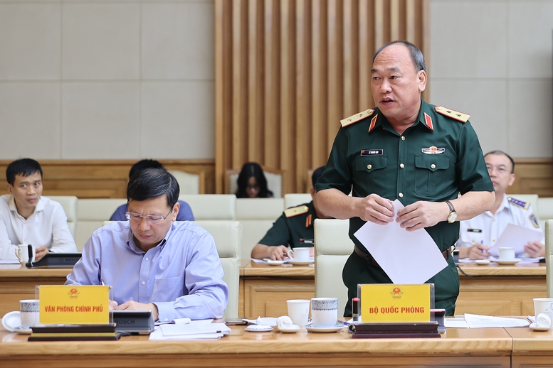 Trung tướng Lê Quang Đạo, Phó Tổng Tham mưu trưởng Quân đội nhân dân Việt Nam báo cáo tại cuộc họp- Ảnh: VGP/Nhật Bắc