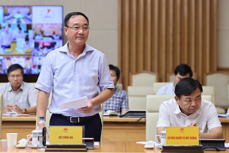 Thứ trưởng Bộ Công an Phạm Thế Tùng báo cáo tại cuộc họp - Ảnh: VGP/Nhật Bắc