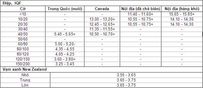 GIÁ MỘT SỐ MẶT HÀNG HẢI SẢN TẠI THỊ TRƯỜNG MỸ