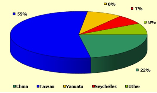 55% tổng lượng cá ngừ mắt to đông lạnh Nhật Bản NK từ Đài Loan (32.543 tấn), tiếp đó là Trung Quốc chiếm 22% (13.142 tấn).