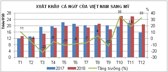 (vasep.com.vn) Sau một thời sụt giảm liên tục, XK cá ngừ của Việt Nam sang Mỹ năm 2018 đã phục hồi trong 3 tháng cuối năm. Do vậy, tổng giá trị XK cá ngừ của Việt Nam sang Mỹ năm 2018 vẫn tăng 1,7% so với năm 2017, đạt 230 triệu USD. Nguyên nhân của sự tăng trưởng này là do các nhà nhập khẩu Mỹ đang hạn chế NK các lô hàng từ Trung Quốc do những lo ngại đang gia tăng liên quan đến việc tăng thuế NK cá ngừ.