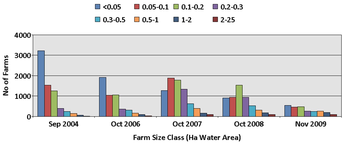 Liên tục liênkeets nhanh chóng hơn 6 năm - An Giang giảm nhanh các trang trại của các hộ nuôi nhỏ nhất (<500m2-2.000m2) và tăng trưởng các đơn vị lớn hơn từ 1-25ha.