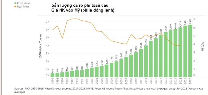 Mặc dù giá cá tra tăng cao và đầu tư mạnh từ một số công ty lớn trong năm nay, sản lượng cá tra của Việt Nam dự kiến sẽ chững lại vào năm 2020. Từ mức ước tính 1,27 triệu tấn vào năm 2018, tăng lên 1,31 triệu dự kiến cho năm 2019 và giảm nhẹ đến 1,3 triệu tấn vào năm 2020.