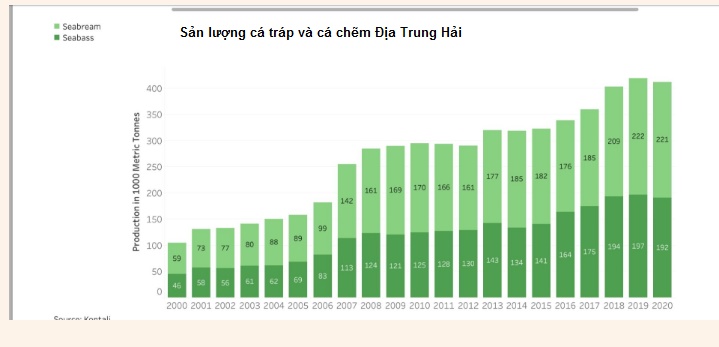 GAA báo cáo sản lượng cá chẽm và cá tráp biển Địa Trung Hải tăng vọt trong năm 2018, từ 175.000 tấn cá chẽm và 185.000 tấn cá tráp trong năm 2017, lên lần lượt 194.000 tấn và 209.000 tấn trong năm 2018.