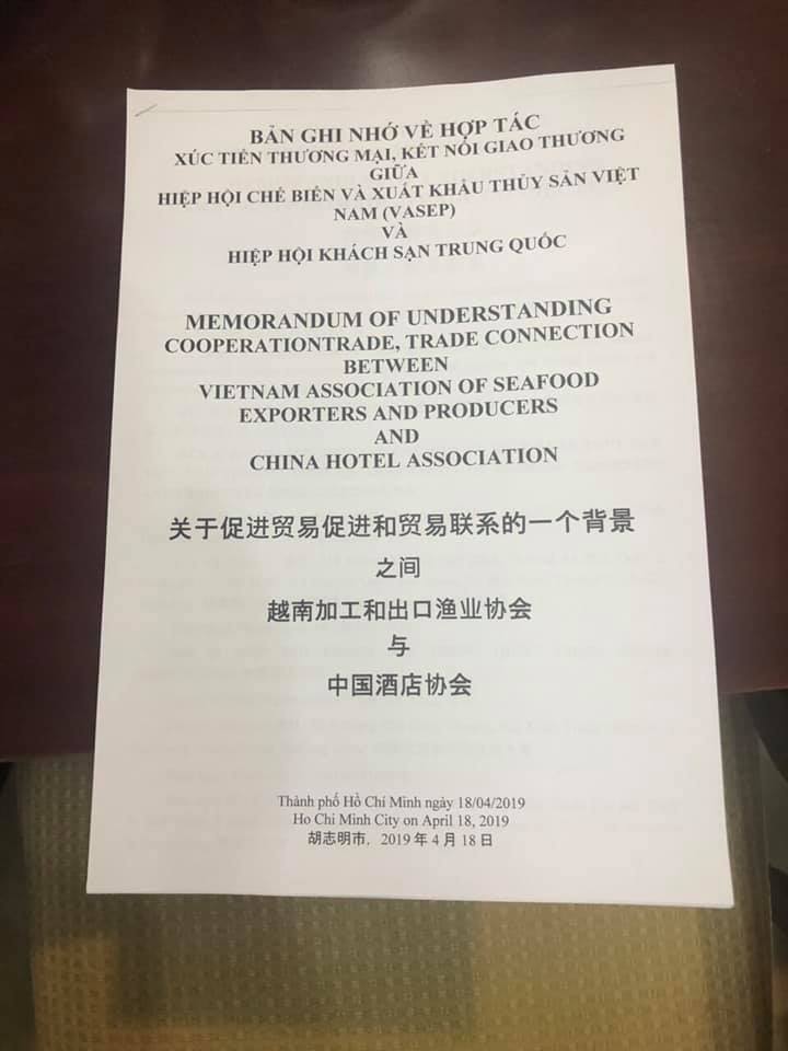 Trong khuôn khổ diễn đàn, Hiệp hội Chế biến và Xuất khẩu Thủy sản Việt Nam (VASEP) đã ký Bản ghi nhớ về Hợp tác Xúc tiến Thương mại, kết nối giao thương với Hiệp hội Khách sạn Trung Quốc. Ngoài ra tại đây, Công ty CP Vĩnh Hoàn cũng đã ký thoả thuận giao thương với Tập đoàn Hoa Thần Long Đức Phong.