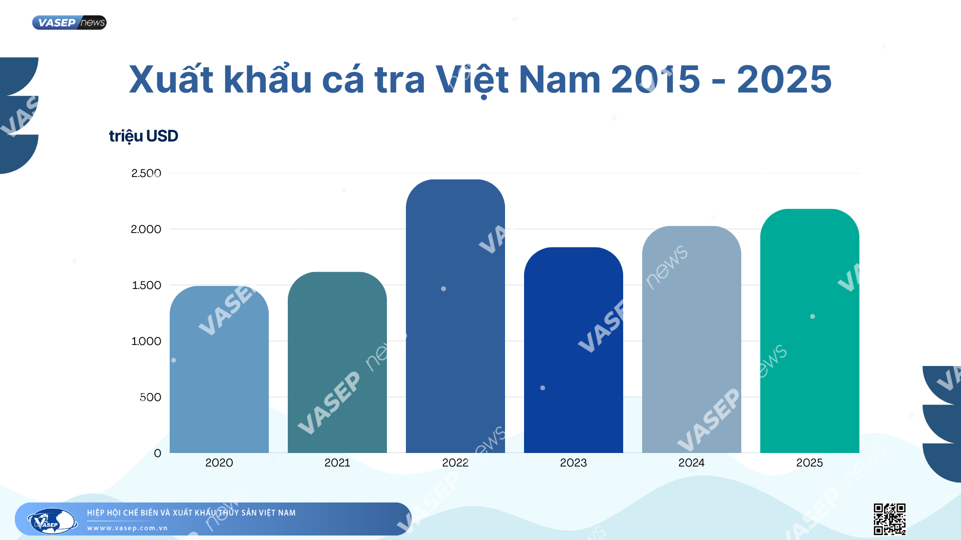 - Từ năm 2021, tỷ trọng cá tra trong tổng kim ngạch xuất khẩu thủy sản đã tăng trở lại, lên tới 37,2% vào năm 2022 đạt 2,4 tỷ USD, mức cao nhất trong giai đoạn 10 năm qua. Năm 2025, kim ngạch xuất khẩu cá tra đạt hơn 2,2 tỷ USD, tăng 8% so với năm 2024.