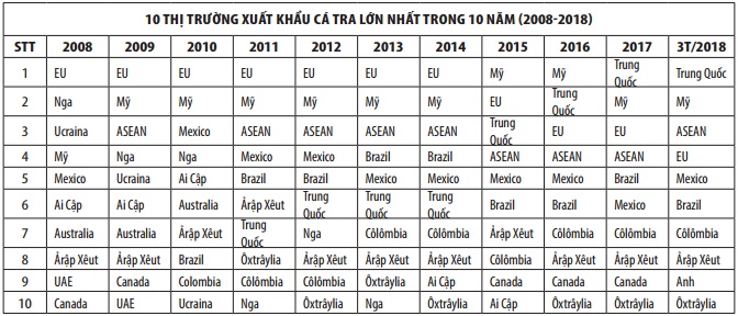 Cũng trong giai đoạn này, cá tra Việt Nam gặp liên tiếp các rào cản về thuế chống bán phá giá, chương trình thanh tra cá da trơn (tại Mỹ); và bị bôi nhọ hình ảnh bởi truyền thông, mạng xã hội tại EU ảnh hưởng lớn đến hoạt động XK. Giá cá tra trung bình giảm từ 2,75 USD xuống còn 2,15 - 2,25 USD/kg. 3 năm tiếp theo vào năm 2011, giá trị XK cá tra đạt mốc 1,8 tỷ USD.