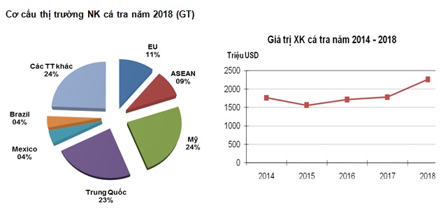 Năm 2017, Trung Quốc lần đầu tiên đã trở thành thị trường XK cá tra lớn nhất Việt Nam khi các thị trường chính như Mỹ, Châu Âu gặp hàng loạt các thách thức từ thuế chống bán phá giá, Đạo luật Farm Bill của Hoa Kỳ, truyền thông bôi bẩn ở một số nước EU. Tiếp tục đà tăng trưởng ổn định này, năm 2018 kim ngạch XK vào Trung Quốc đạt 528 triệu USD tăng 28%.