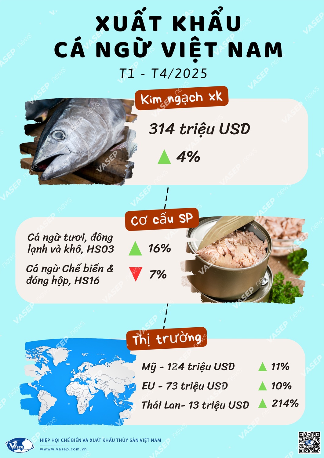 Infographic: Xuất khẩu cá ngừ của Việt Nam 4 tháng đầu năm 2025