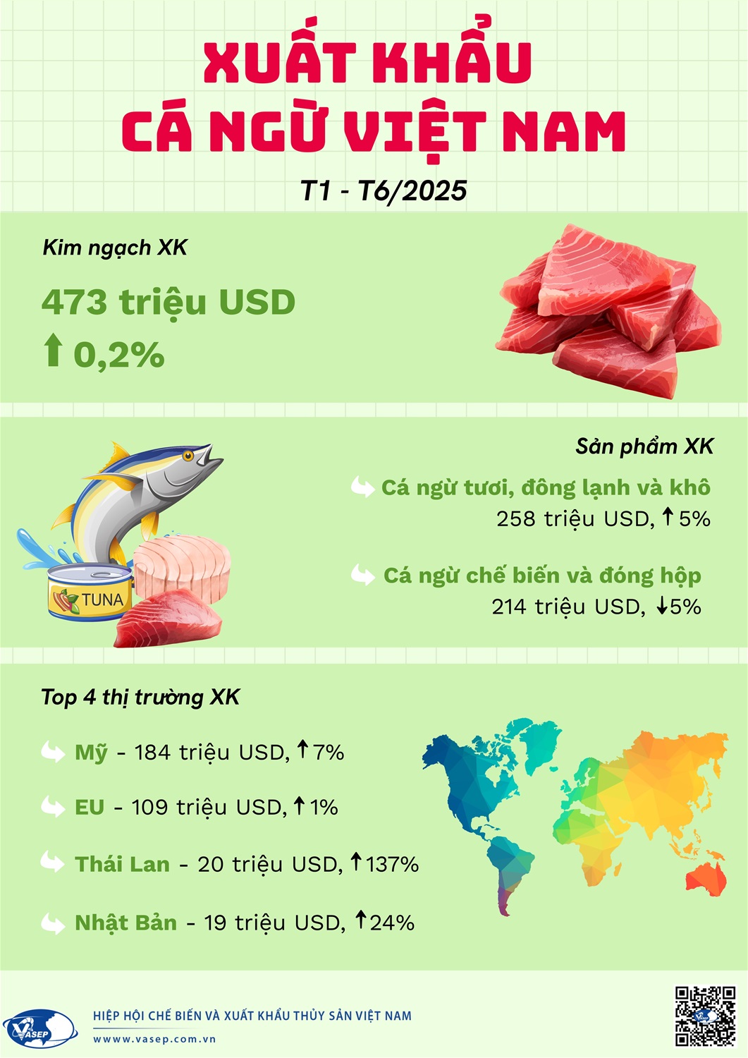 Infographic: Xuất khẩu Cá ngừ của Việt Nam 6 tháng đầu năm 2025