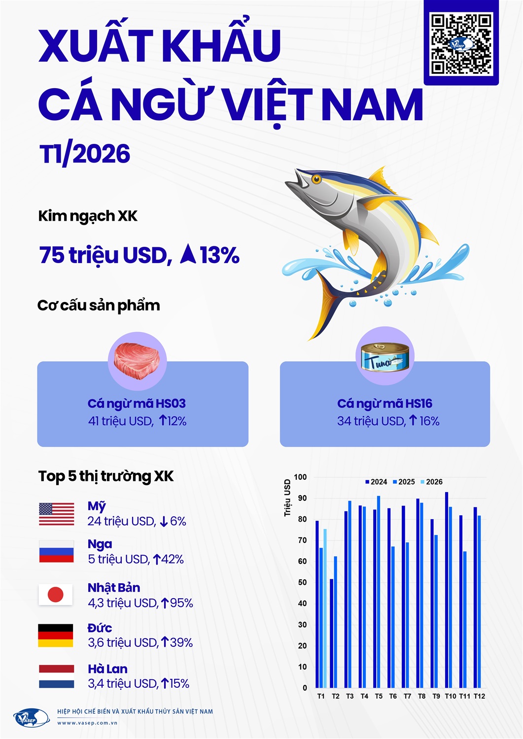Infographic: Xuất khẩu Cá ngừ của Việt Nam tháng 1 năm 2026
