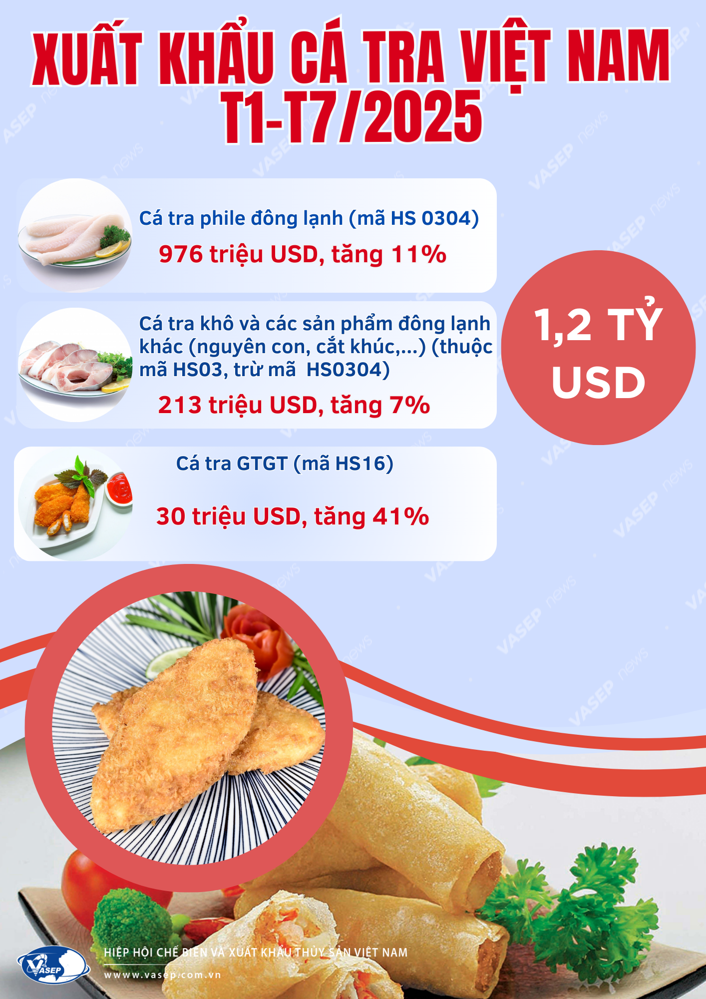 Infographic: Xuất khẩu cá tra Việt Nam 7 tháng đầu năm 2025