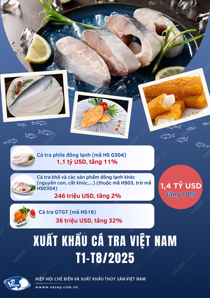 Infographic: Xuất khẩu cá tra Việt Nam 8 tháng đầu năm 2025