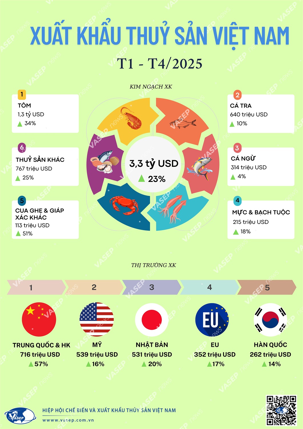 Infographic: Xuất khẩu Thuỷ sản của Việt Nam 4 tháng đầu năm 2025
