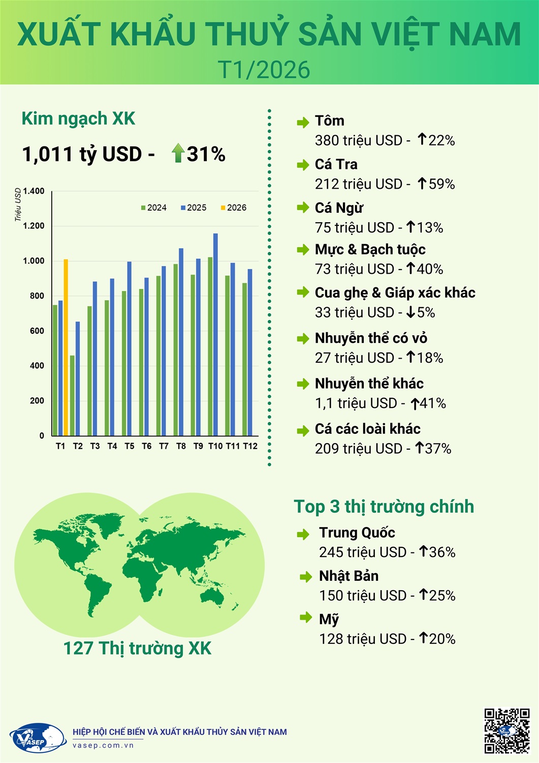 Infographic: Xuất khẩu Thuỷ sản của Việt Nam tháng 1 năm 2026