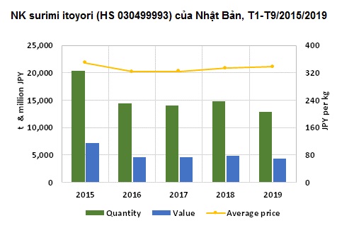 Nhật Bản: Nhập khẩu surimi itoyori giảm 9 tháng đầu năm 2019