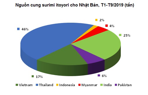 Thái Lan là nguồn cung cấp chính surimi itoyori cho Nhật Bản trong 9 tháng đầu năm. Giá trị XK mặt hàng này của Thái Lan sang Nhật Bản đạt 5.527 tấn, trị giá khoảng 2.023 triệu yên, CIF. Ấn Độ cung cấp 2.951 tấn.