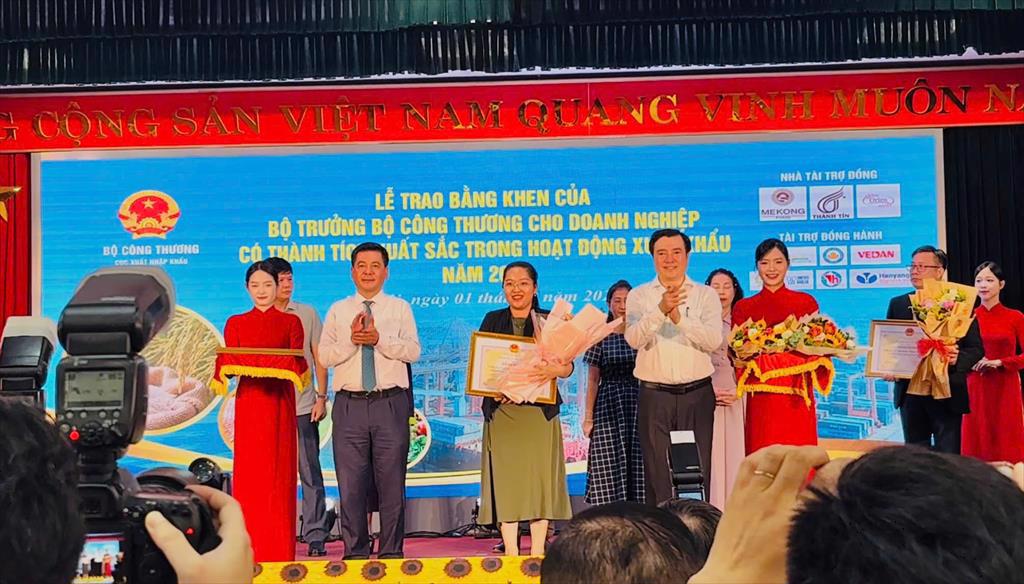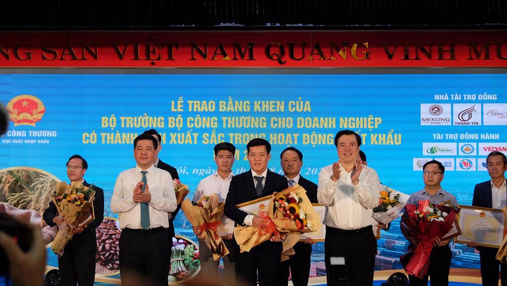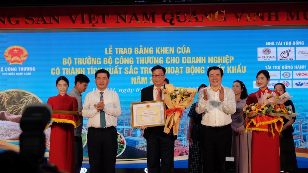 Tại buổi lễ, 33 doanh nghiệp có thành tích xuất sắc trong hoạt động xuất khẩu năm 2023 đã vinh dự được nhận Bằng khen của Bộ trưởng Bộ Công Thương. Trong đó, 05 Doanh nghiệp thủy sản vinh dự nhận Bằng khen của Bộ trưởng Bộ Công thương gồm: