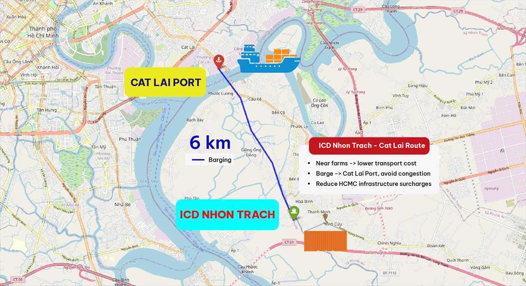 - Đi sà lan (barge) từ ICD -> Cát Lái: tránh kẹt xe cửa ngõ TP.HCM