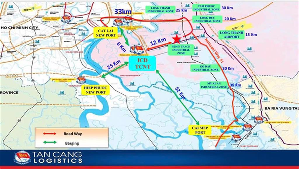 - ICD -> Các KCN lớn như Nhơn Trạch (12 km), Long Đức (20 km), Tam Phước (30 km), Gò Dầu (30 km), Mỹ Xuân (35 km)