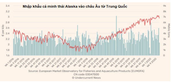NK các sản phẩm cá minh thái phile cấp đông hai lần của thị trường EU từ Trung Quốc đang giảm, trong khi khối lượng XK cá chẽm và cá tráp từ Thổ Nhỹ Kỳ giảm dù giá tăng.