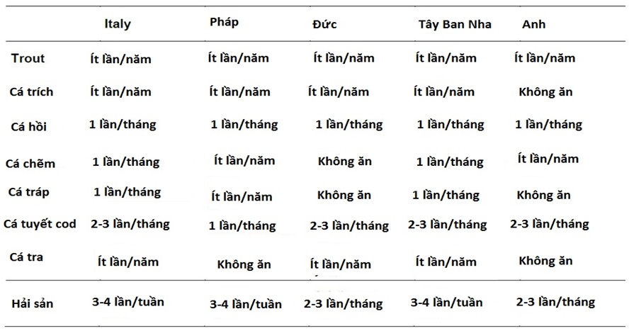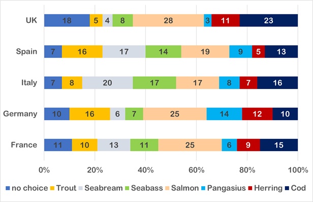 Khả năng lựa chọn trên toàn châu Âu: Cá hồi Salmon được lựa chọn nhiều nhất trừ Italy (cá tráp, cá chẽm). Cá tra được yêu thích hơn ở Đức, Tây Ban Nha và Italy.
