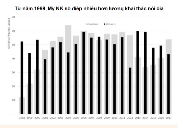 Handy cho biết dựa giả thuyết của mình, XK tăng và NK giảm có nghĩa là có thể chỉ có 35.830 tấn sò điệp ở Mỹ trong năm nay, giảm 2,5% so với năm 2017.