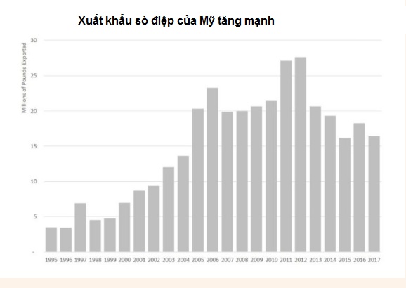 Ngoài ra, nếu đồng đô la Mỹ giảm, các nhà XK Mỹ cũng sẽ dễ dàng XK sò điệp sang các nước khác. Hoa Kỳ có thể XK 20 triệu pao sò điệp (9.071 tấn) vào năm 2018, tăng 33% so với năm 2017.