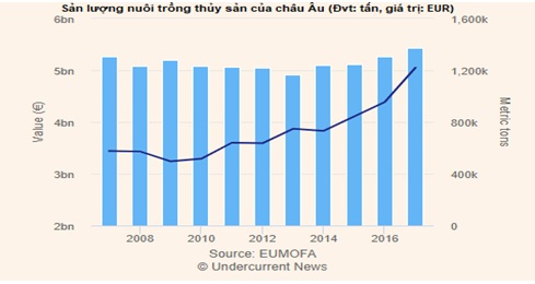 Theo EC, khoảng 1/4 sản lượng tiêu thụ thủy sản ở châu Âu là thủy sản nuôi trồng.
