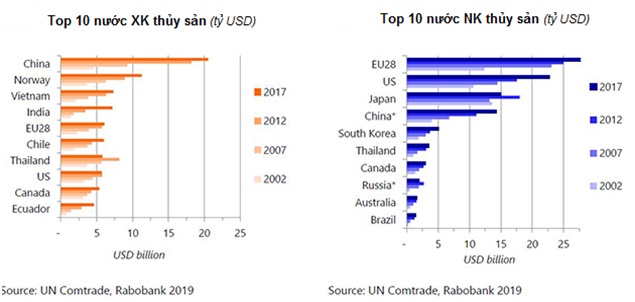 Rabobank dự báo thủy sản tiếp tục là một trong những phân khúc thực phẩm được giao dịch mạnh nhất, do bản chất sản xuất tại địa phương và nhu cầu thế giới của mặt hàng này. Gia công và tái xuất cũng rất phổ biến trong ngành thủy sản – càng gia tăng thêm các luồng thương mại.