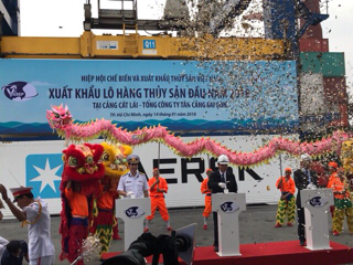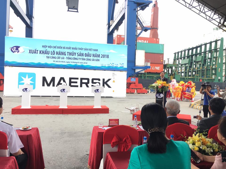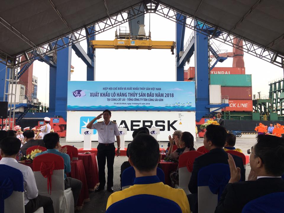 Hòa vào không khí hân hoan mừng thắng lợi của ngành thủy sản Việt Nam trong năm 2017 đồng thời cũng tạo thêm động lực cho các doanh nghiệp thủy sản đẩy mạnh hoạt động xuất khẩu quyết tâm hoàn thành vượt mức kế hoạch trong năm 2018. Vào lúc 9h00 ngày 14/1/2018, lần đầu tiên Hiệp hội VASEP cùng Tổng Công ty Tân Cảng Sài Gòn tổ chức sự kiện ”Xuất khẩu lô hàng thủy sản đầu năm 2018” như một lời cam kết cho mục tiêu 10 tỷ USD XK thủy sản vào năm 2020. Hiệp hội và các doanh nghiệp rất vinh dự được đón tiếp Bộ trưởng tại sự kiện này và bấm nút phát lệnh XK đầu năm 2018.