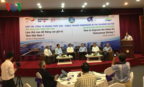 Làm thế nào để nâng cao giá trị tôm Việt Nam” là chủ đề của Đối thoại bàn tròn thủy sản do Tổng cục Thủy sản, Bộ NN&PTNT, Hiệp hội Chế biến và Xuất khẩu thủy sản Việt Nam (VASEP) và Chương trình Quản lý Tổng lý tổng hợp vùng ven biển, Cơ quan Hợp tác Phát triển Đức (ICMP-GIZ) tổ chức ngày 21/6, tại thành phố Cần Thơ. Hơn 100 đại biểu đến từ các doanh nghiệp sản xuất giống, thức ăn, hiệp hội và nông dân nuôi tôm tại ĐBSCL tham dự.