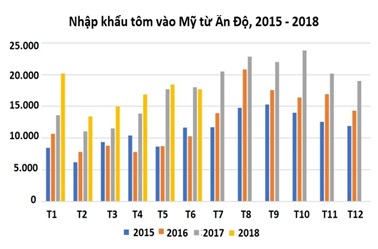 Trong tháng 6/2018, Ấn Độ XK sang Mỹ 17.708 tấn tôm, giảm 2% so với 18.014 tấn của tháng 6/2017. Đây là lần đầu tiên kể từ tháng 6/2016, Mỹ giảm NK tôm từ Ấn Độ..jpg)