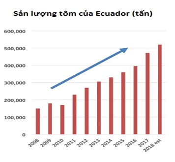 Hiệu quả sản xuất được cải thiện và kỹ thuật tiên tiến đang đẩy mạnh sản lượng tôm của Việt Nam và Ecuador. Sản lượng tôm của Ecuador dự báo vượt 500.000 tấn năm 2018.