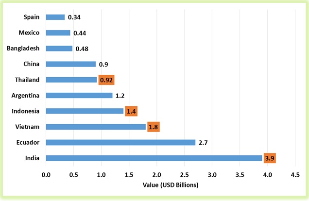 • Xuất khẩu tăng trưởng tích cực ở các nước Ấn Độ và Ecuador